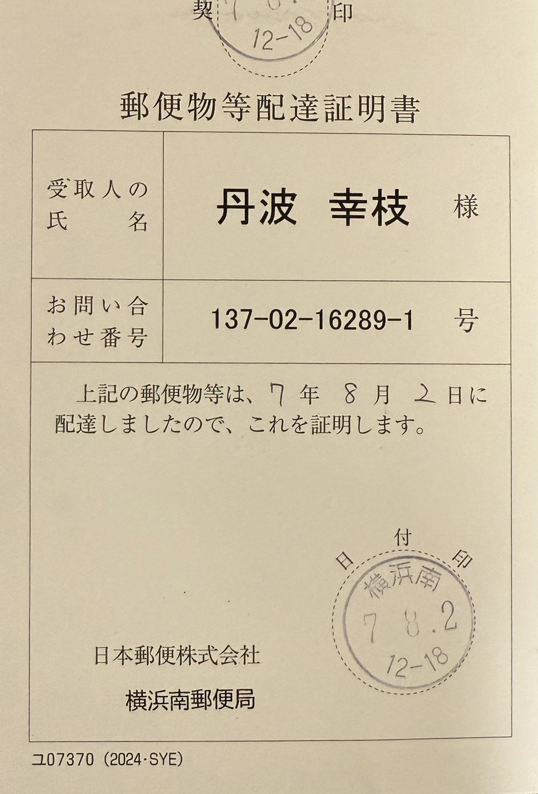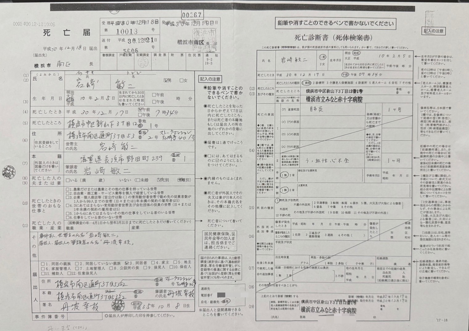 • 死亡届提出者は「丹波幸枝」死亡診断書の請求・受け取りも「丹波幸枝」