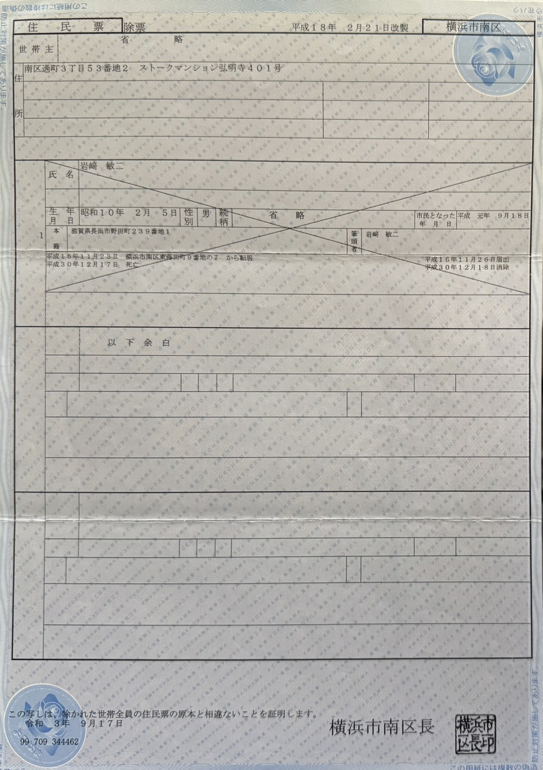 🔗(死亡記録・除籍票)