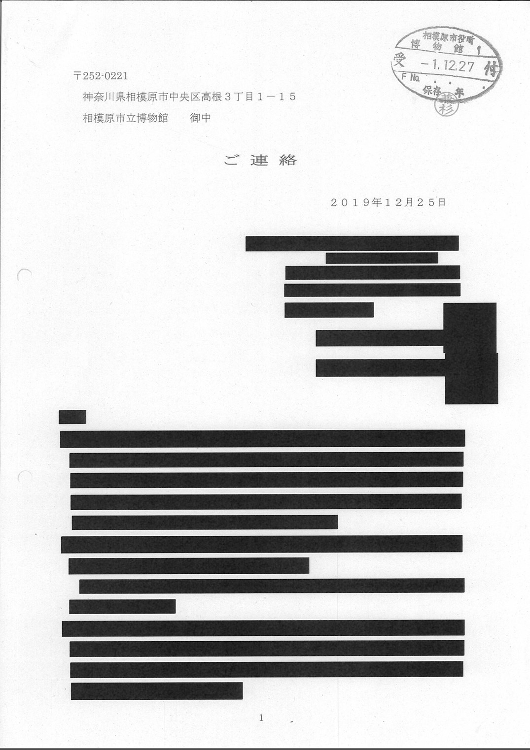 寄贈の無効が判明し返還決定(1回目通知)