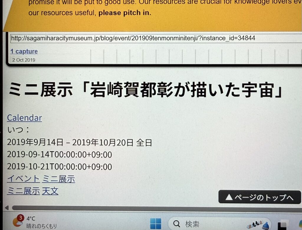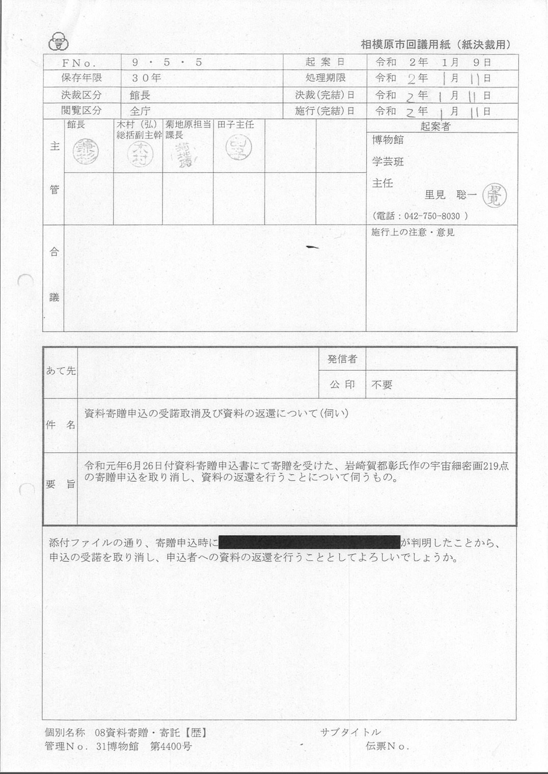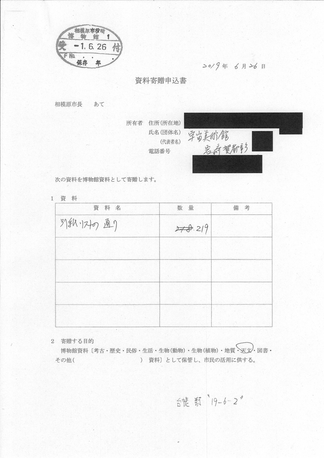 2019年6月26日 寄贈申込書受理(団体名:宇宙美術館、所有者:岩崎賀都彰)