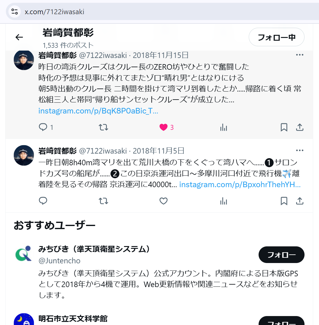 2018年11月15日 ”X”Twitter に 岩崎本人投稿