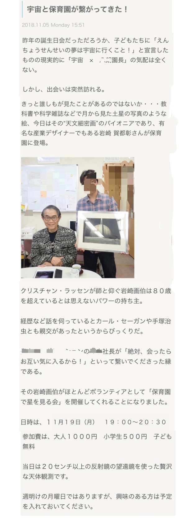 2018年11月 5日 某保育園に岩﨑本人が訪園(証拠あり)