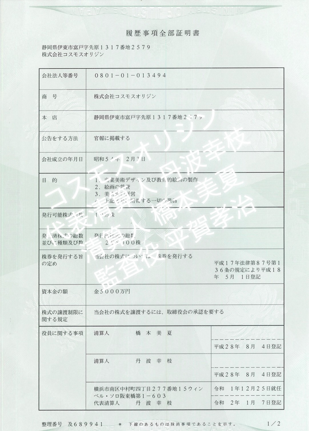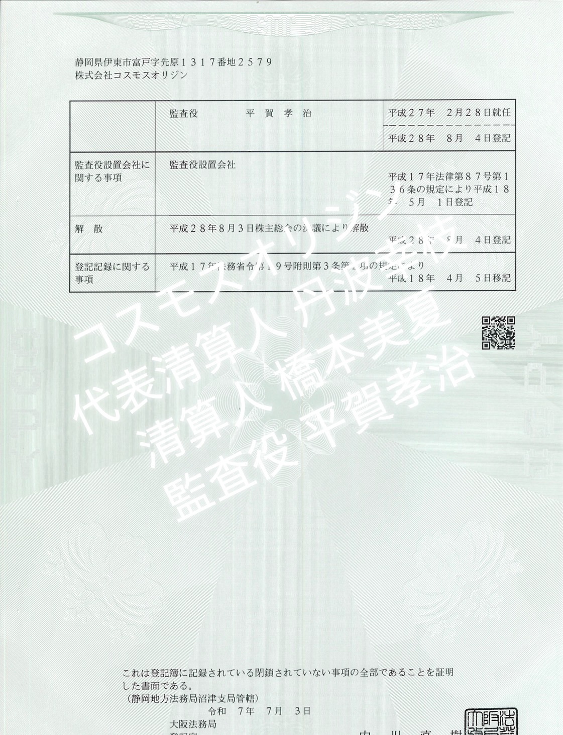 丹波幸枝 宇宙美術館、副館長、コスモスオリジン元取締役、死亡診断書請求人及び死亡届出人 現代表清算人