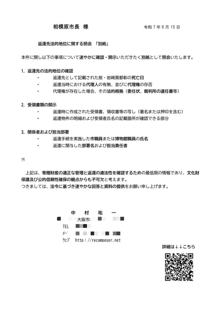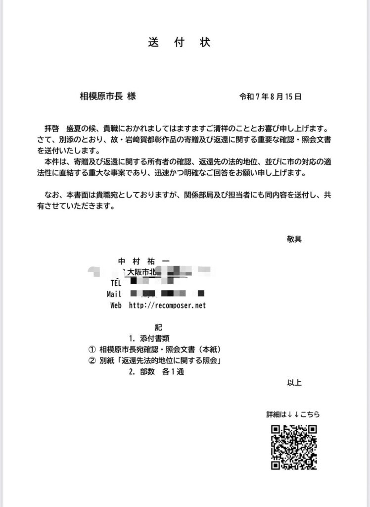 相模原市(相模原市教育委員会)より2025年8月15日付け内容証明郵便に回答がありました。回答内容については、詳細を note に公開しました